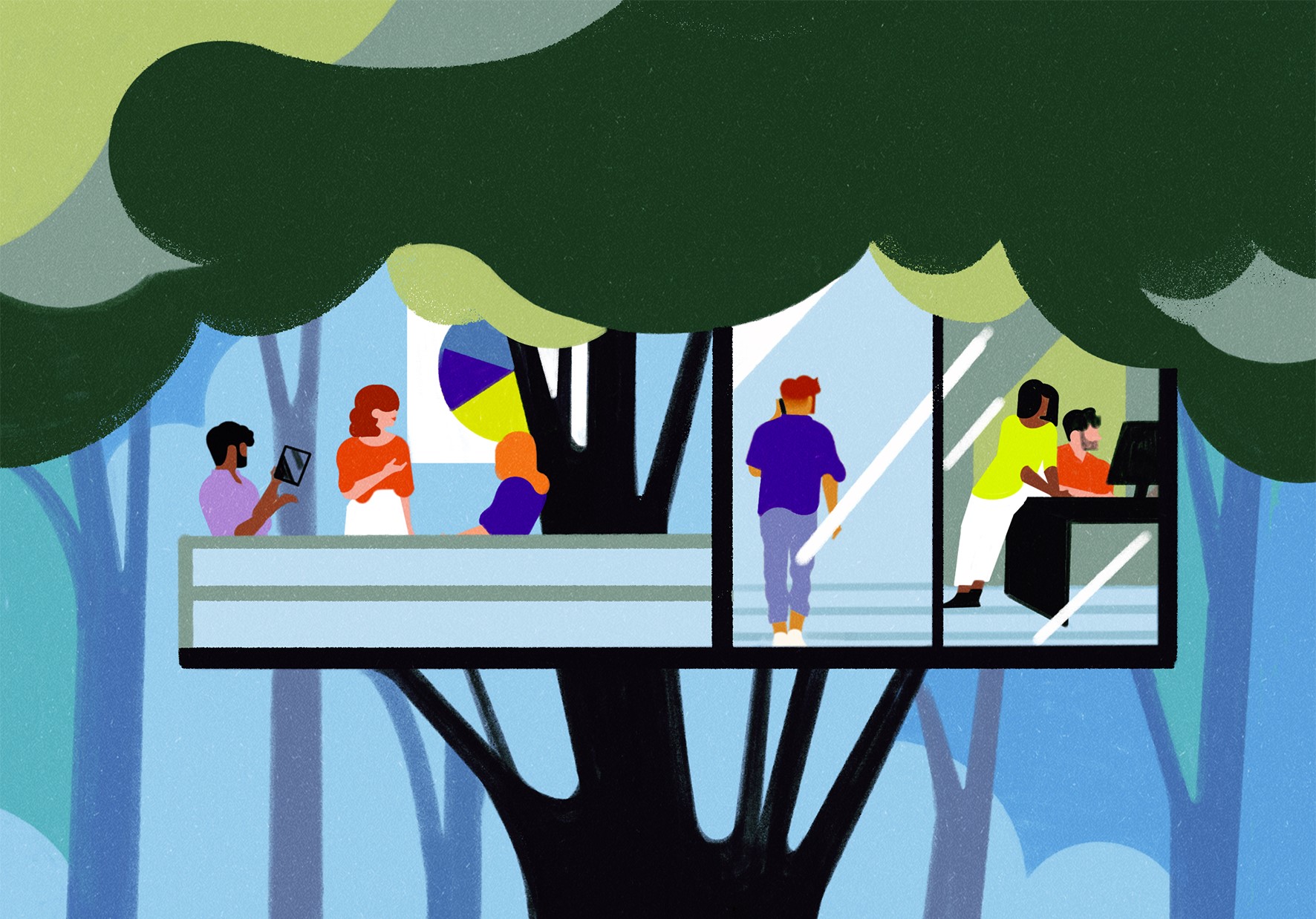 What we think is that people will keep working from home for several days a week or per month, maybe keeping those opportunities to do the focus work they need to do and some zoom meetings, and then keep the more collaborative moments for when they are together with other people in the office.